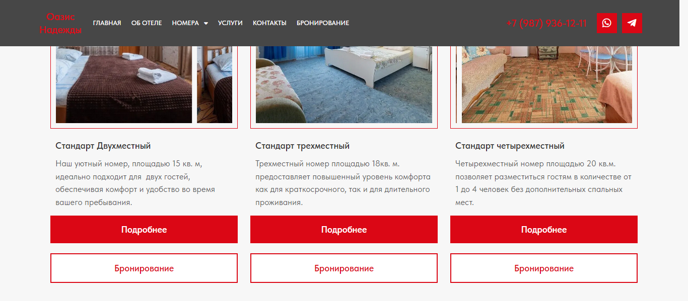 Создана копия сайта Отель «Оазис Надежды» на WordPress, добавлен виджет для онлайн бронирования Bnovo.